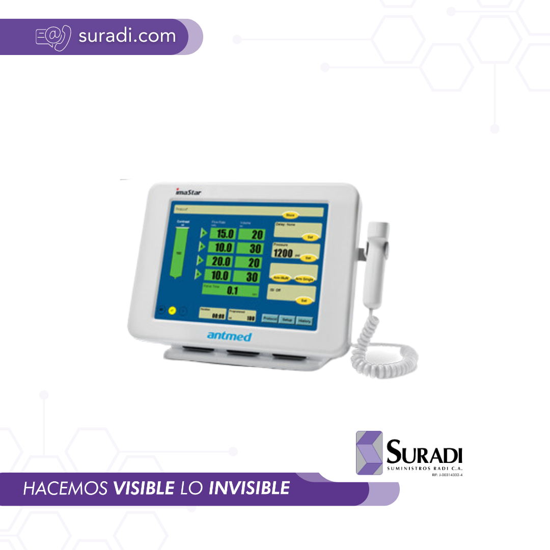 El inyector para Angiografía es de un cabezal aprueba de agua con inyección automática y sincronizada con el tomógrafo de forma inalámbrica